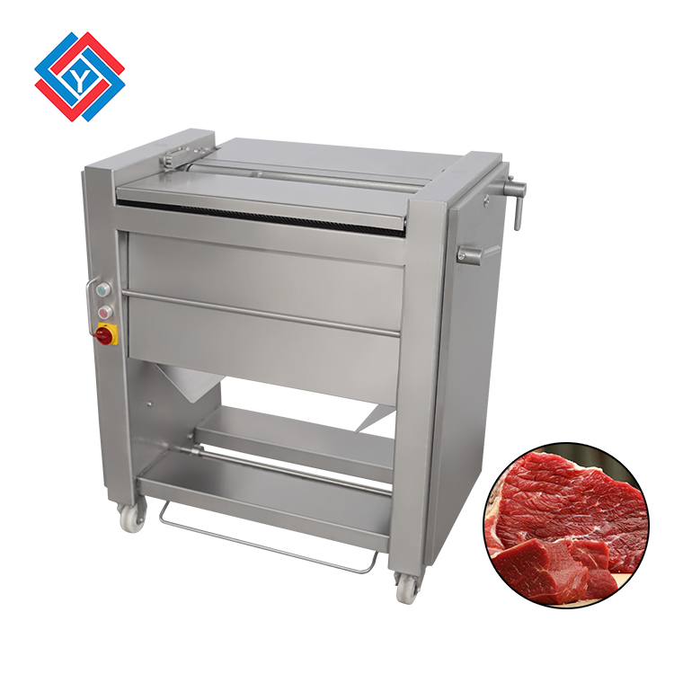 這款去筋膜機能夠適用于各種大小的肉塊進行分割,去筋膜的厚度可以進行調節,加工之后的產品外觀整齊且光滑。