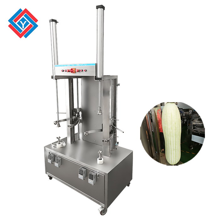 本機適用于木瓜、哈密瓜、西瓜等瓜果削皮,削皮厚薄可調,方便。刀組上下自動循環削切效率高,去皮率達到95%以上。削皮刀架設計,可使瓜皮定向排出,方便收集清理。機器拆洗方便,使用時操作簡單,衛生,適合餐飲行業,飯堂,食品加工廠使用。